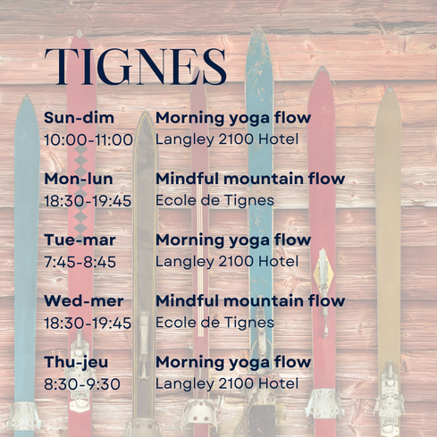 Or if you'll find yourself in the mountains, classes will be up and running in Tignes, Val d'Isère, Sainte Foy Tarentaise & La Rosiere through December :